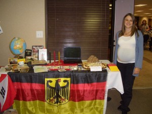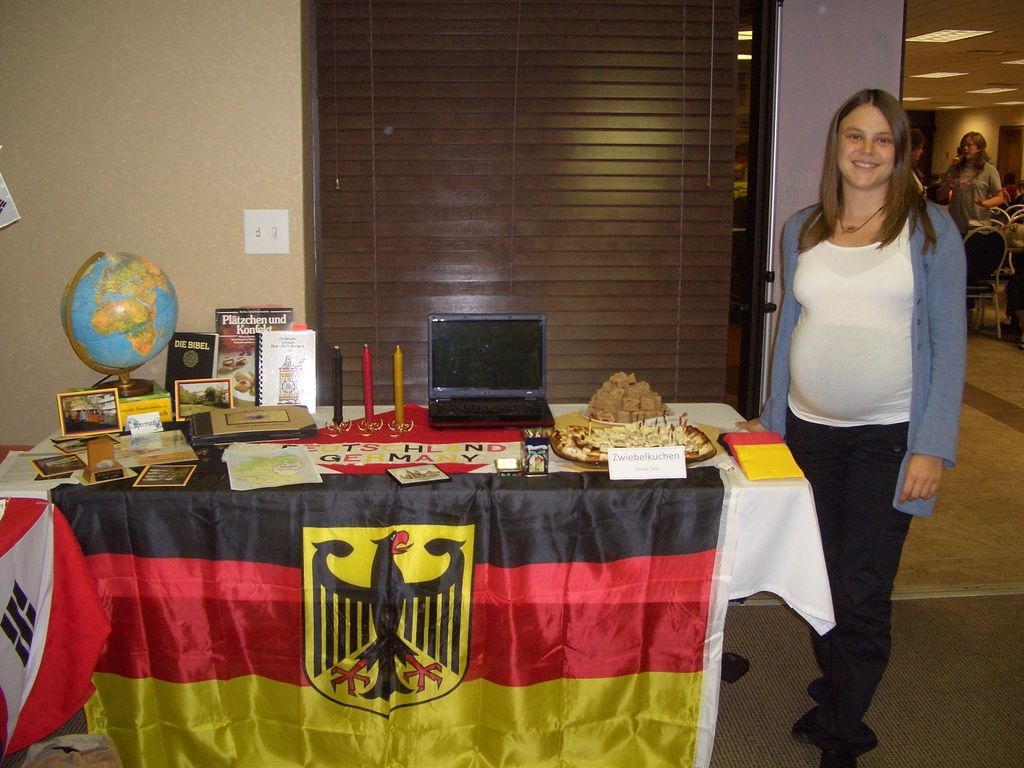Einmal im Monat haben wir Wives Fellowship. Dazu sind alle Ehefrauen von den Studenten eingeladen. Normalerweise gibt es etwas zu essen und einen Vortrag. Und je nach Abend noch ein anderes Angebot. Am Montag hatten wir zum Beispiel einen World Bazar. Alle, die nicht aus der USA sind, hatten die Möglichkeit einen für ihr Land typischen Tisch vorzubereiten. Natürlich durfte darauf auch ein ländertypisches Essen nicht fehlen. Zusammen mit einer anderen Frau habe ich einen deutschen Tisch vorbereitet. Sie war vor einiger Zeit als Missionarin in Deutschland und hatte deshalb noch viele „typisch deutsche Sachen“ (wie zum Beispiel eine schwarz-rot-goldene Tischdecke,…). Zu essen gab es an unserem Tisch Zwiebelkuchen und Lebkuchen (auch wenn es noch nicht Weihnachten ist 🙂 ). Das Lebkuchengewürz musste ich mir allerdings selbst zusammenmischen, da es hier so etwas nicht zu kaufen gibt… Der Abend war sehr schön und man konnte viele verschiedene Länder und Leute kennen lernen.