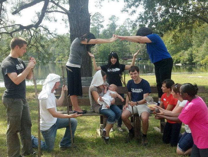 Letztes Wochenende war von der Uni aus eine Kurzfreitzeit (genannt Fall Retreat) auf einem wunderschönen Gelände mit See etwas abseits von Columbia. Los ging’s am Freitag um 13 Uhr mit einem Stationenlauf. Dort es gab verschiedenste Dinge zu tun: vom Gewehr- übers Bogenschießen bis hin zu einem lustigen Gruppenbild (wir haben als Gruppe die Weihnachtsgeschichte nachgestellt und Amy war dabei das Jesuskind). Ansonsten gab es drei Einheiten (Predigten), bei denen es um unsere Herzenseinstellung zu Gott und den Menschen um uns herum ging. Nach jeder Einheit hatten wir die Möglichkeit in kleinen Gruppen darüber ins Gespräch zu kommen. Das tat sehr gut und ist immer wieder herausfordernd es nicht nur zu hören, sondern auch im Alltag umzusetzen. Zwischen den einzelnen Programmpunkten konnte man schwimmen gehen, mit dem Kanu auf den See fahren oder die tolle Gemeinschaft mit anderen Studenten und Professoren genießen.